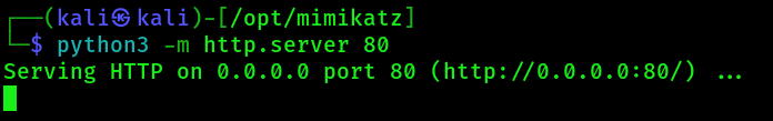 Now navigate under /opt/mimikatz and start a python webserver: