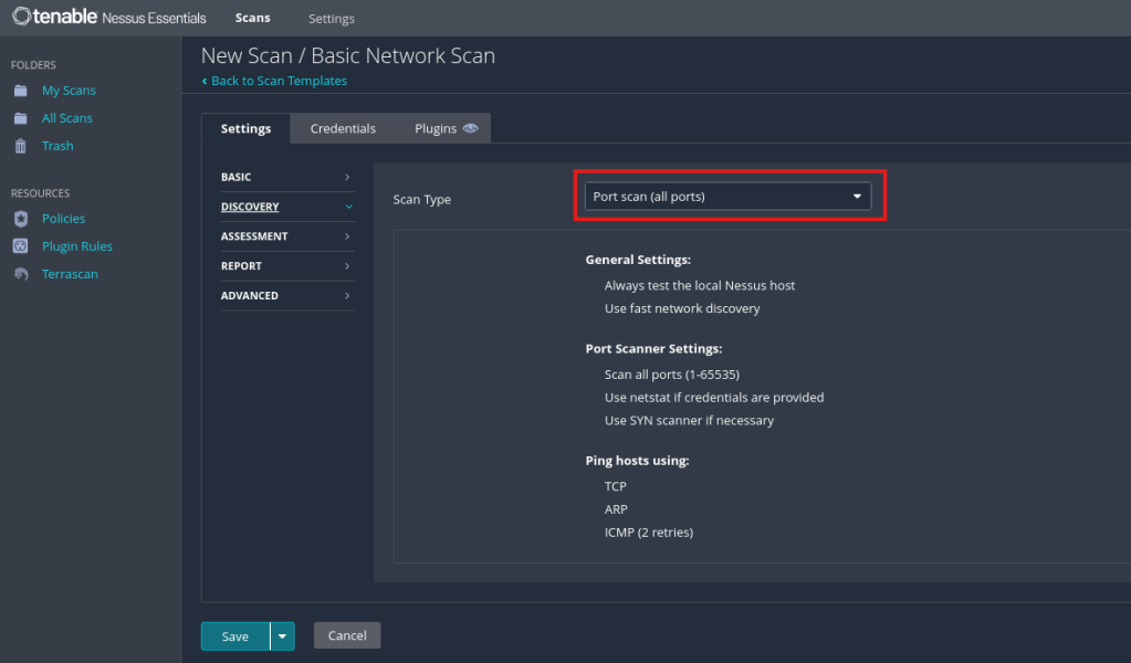 2. Under the Discovery Tab switch to Port scan (all ports):