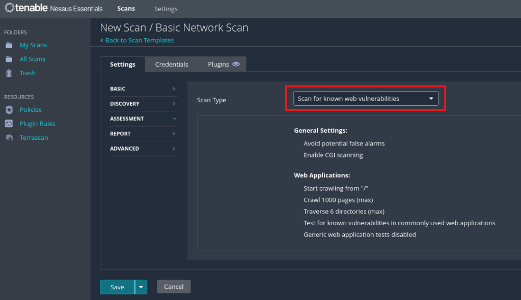3. Under the Assessment Tab switch to Scan for known web vulnerabilities: